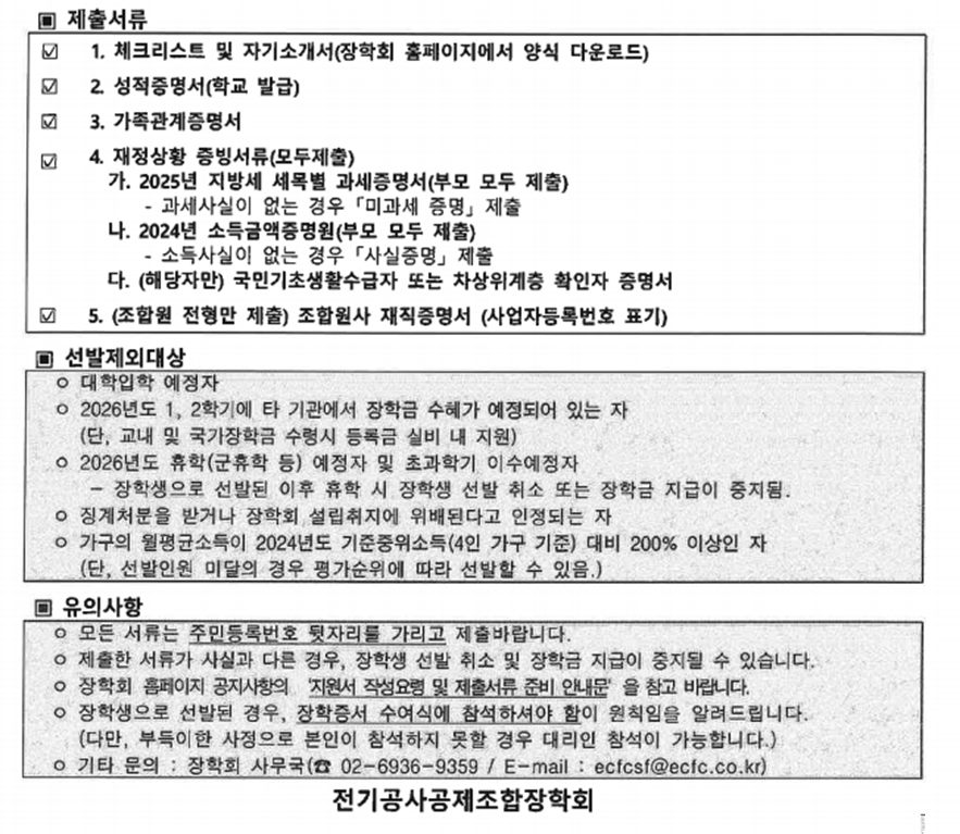 2026년도 전기공사공제조합장학회 장학생 선발 안내