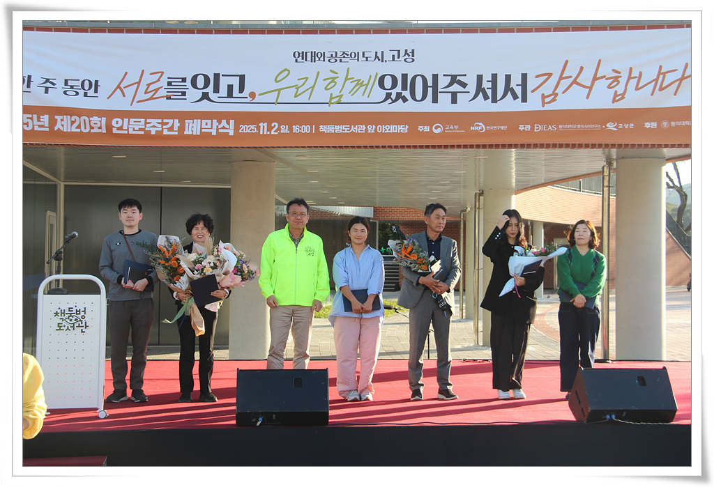 또한 인문주간이 진행된 10월 27일부터 11월 2일까지 고성 책둠벙 도서관 야외 갤러리, 힐링공원 책둠벙에서 ‘일상 속 평화–다시, 너와 나의 일상을 잇다’라는 주제로 사진 공모전 수상작 전시회가 열렸고 11월 2일 공모사진전 우수상 시상식과 함께 2025년 인문주간 행사의 막을 내렸다.